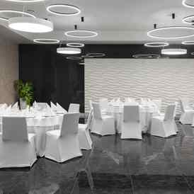 Основной банкетный зал вмещает 60 гостей. Рядом находится «Congress Hall», cтена между залами трансформируется, так что их можно превратить в одно огромное пространство и комфортно разместить здесь до 200 гостей для проведения любого торжества.