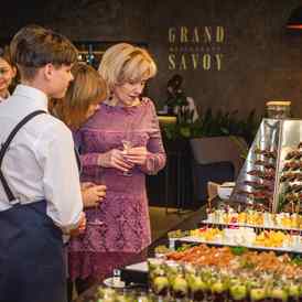Банкетный зал отеля Atrium (Атриум) вместимостью до 200 человек поражает своей изящностью и стилем, а современный ресторан славянской и европейской кухни Grand Savoy будет радовать Вас вкуснейшими авторскими блюдами.